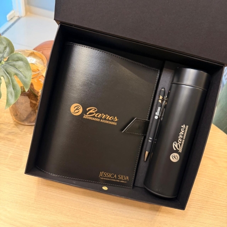 • Kit: Caderno Fichário/Caneta/Garrafa/Caixa